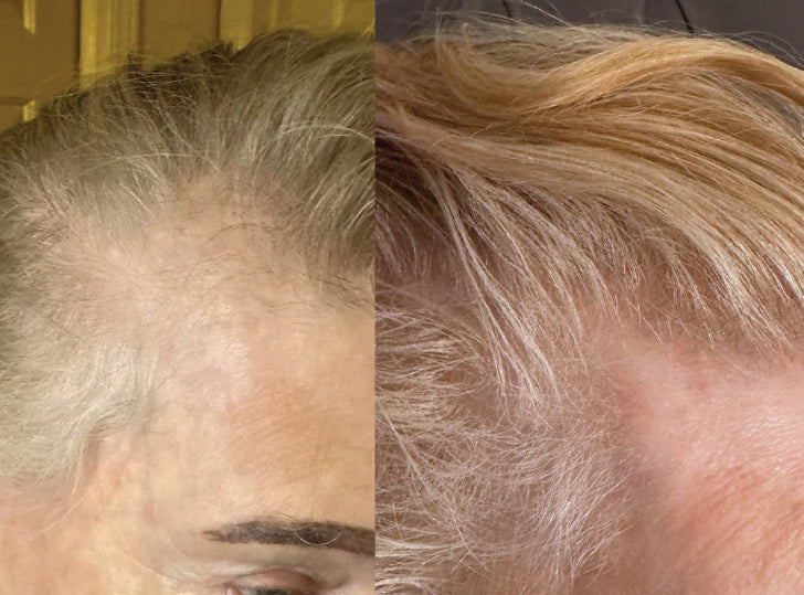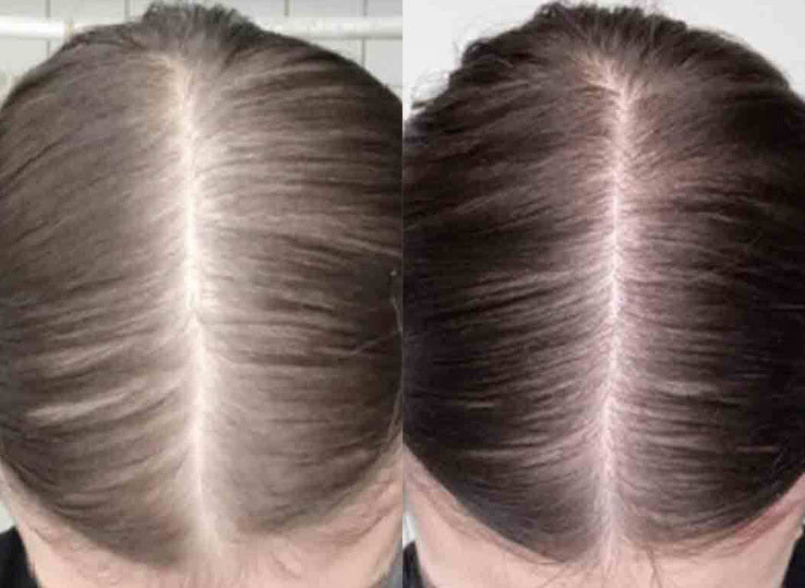 Dopo alcuni mesi di crescita continua, la caduta dei capelli inizierà a rallentare e inizieranno ad apparire nuovi capelli. Ciò significa che il prodotto stimola la ricrescita e inverte la progressione della caduta dei capelli. I capelli appariranno più sani e più folti. La crescita iniziale dei capelli potrebbe essere lanuginosa e morbida ma con un ulteriore trattamento produce nuovi capelli con la stessa consistenza degli altri capelli sul cuoio capelluto.