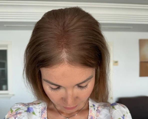 Questo prodotto mi ha cambiato completamente la vita e mi ha dato più sicurezza. Prima ero molto insicura, ma questo prodotto nasconde molto bene la mia chioma diradata.