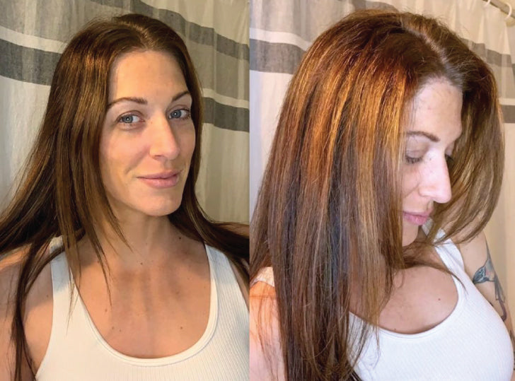 Prima avevo i capelli fini e crespi, ma ora sono lucidi e folti grazie a KeraFiber. I miei capelli hanno più corpo e sinceramente non potrei essere più felice!